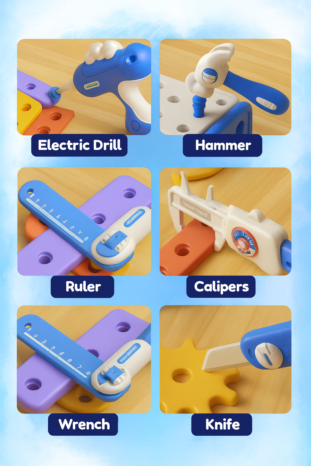 Encourages fine motor skills, problem-solving, and tool recognition — all while having fun!