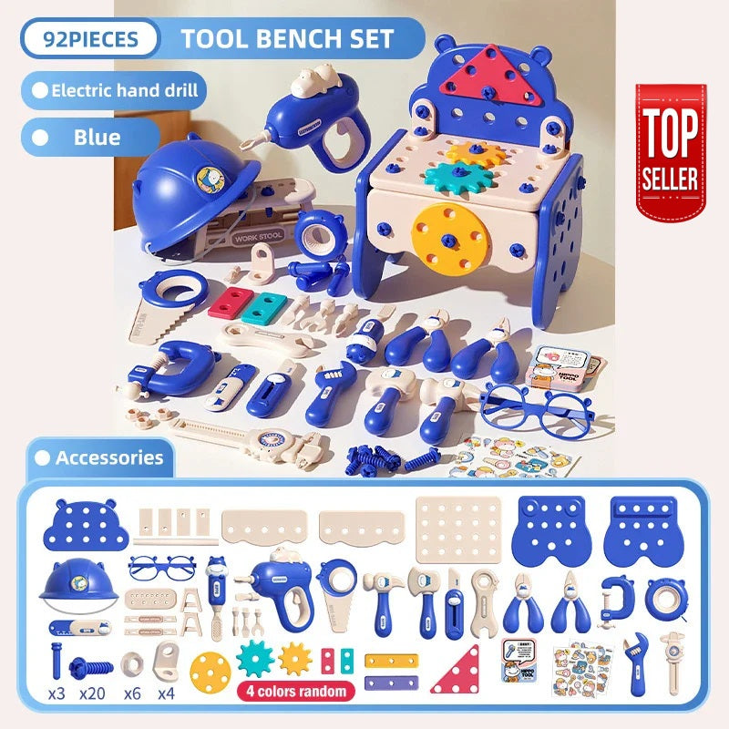 Includes screws, nuts, wrenches, screwdriver, and more — all perfectly sized for small hands.